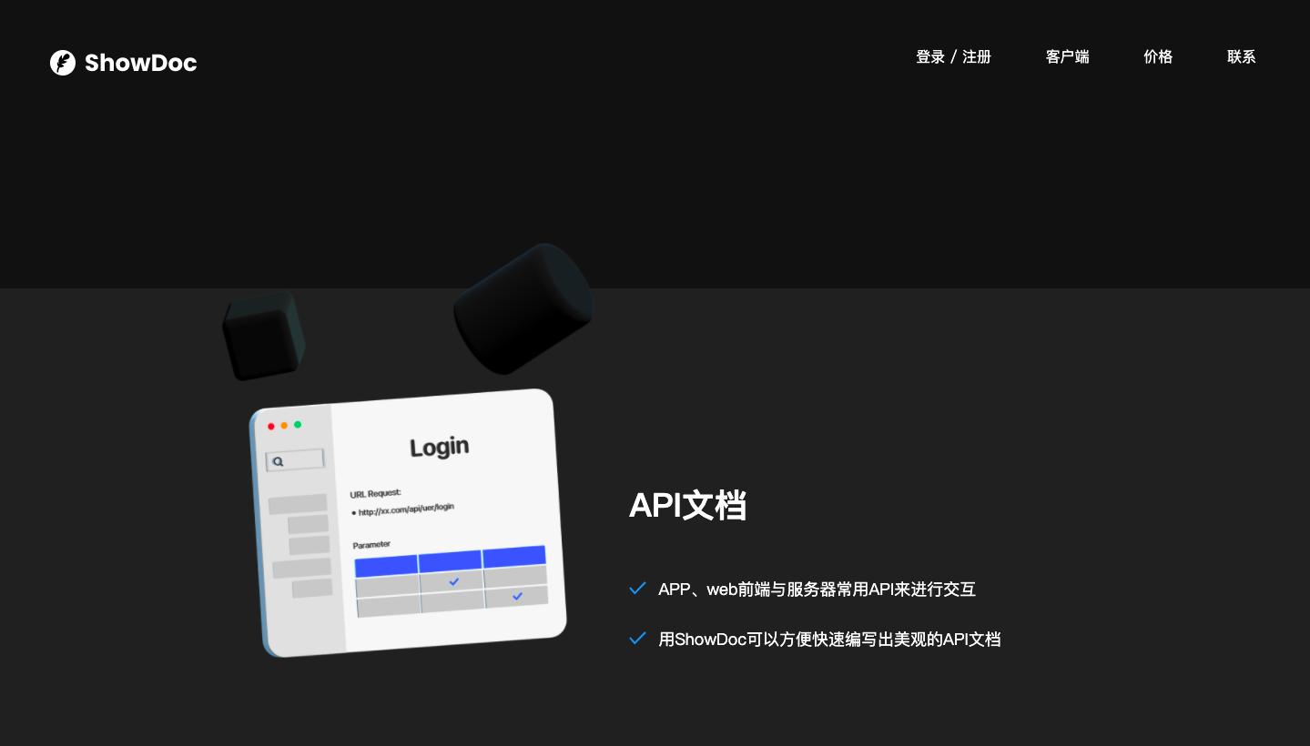 - showdoc支持网页版、手机app版和电脑客户端版。
